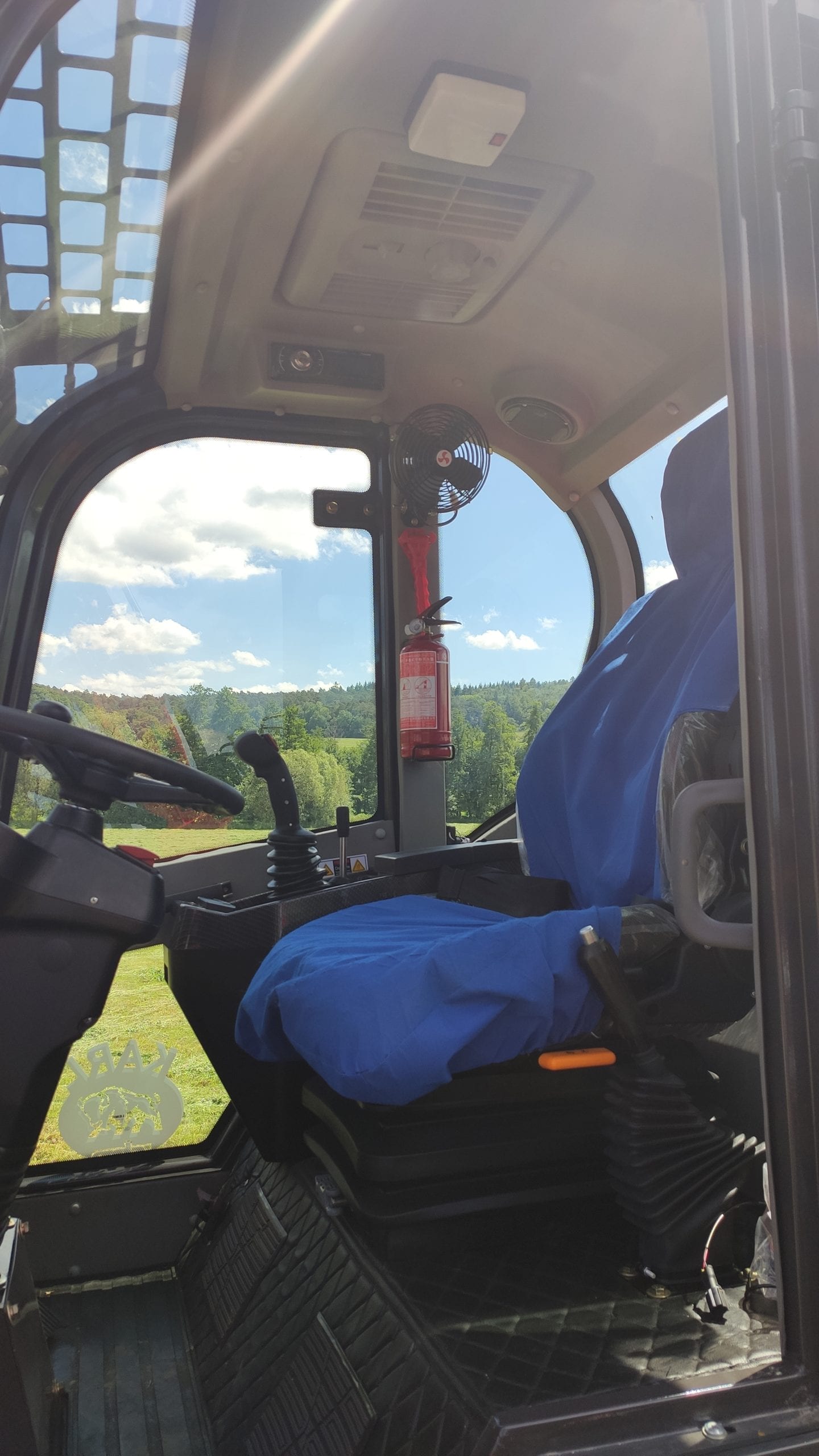 Der Einstieg in die Komfortkabine kann von beiden Seiten erfolgen. Im Inneren findet der Fahrer alles was ihm das tägliche Arbeiten erleichtert, wie z.B. Heizung, Gebläse, gefederter Sitz, verstellbares Lenkrad, MP3 Radio, Rückfahrkamera und vieles mehr.
